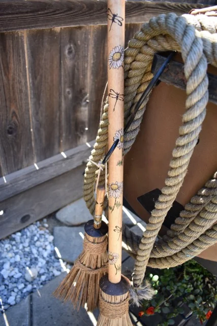 This is by far the best broom I have ever owned for outdoors. I'm on my second, but that is only because I leave it outdoors year round because it's become part of the decor. It's one of my first wood burning test projects and also my first attempt with adding color using crayon pencils.